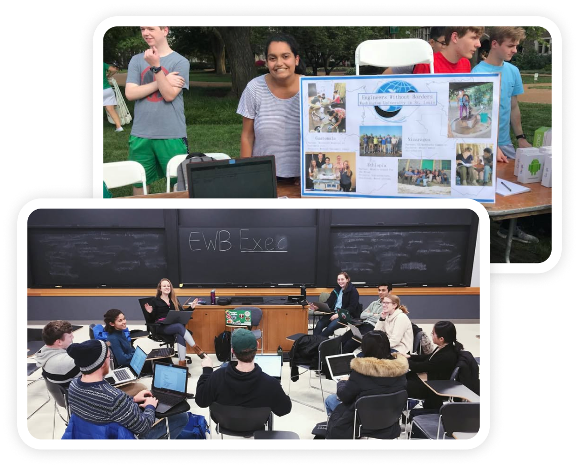 Engineers Without Borders at the Washington University is a student run nonprofit organization dedicated to partnering with underserved communities to design and implement sustainable engineering solutions. Our chapter works on long term, community driven projects that improve access to essential resources such as clean water, sanitation, transportation, and infrastructure. Our members come from a wide range of engineering disciplines and backgrounds, and we emphasize technical excellence, cultural understanding, and sustainable design. Through hands on project work, collaboration with international partners, and local outreach, we strive to develop thoughtful engineers and leaders who are committed to creating lasting, positive global impact.